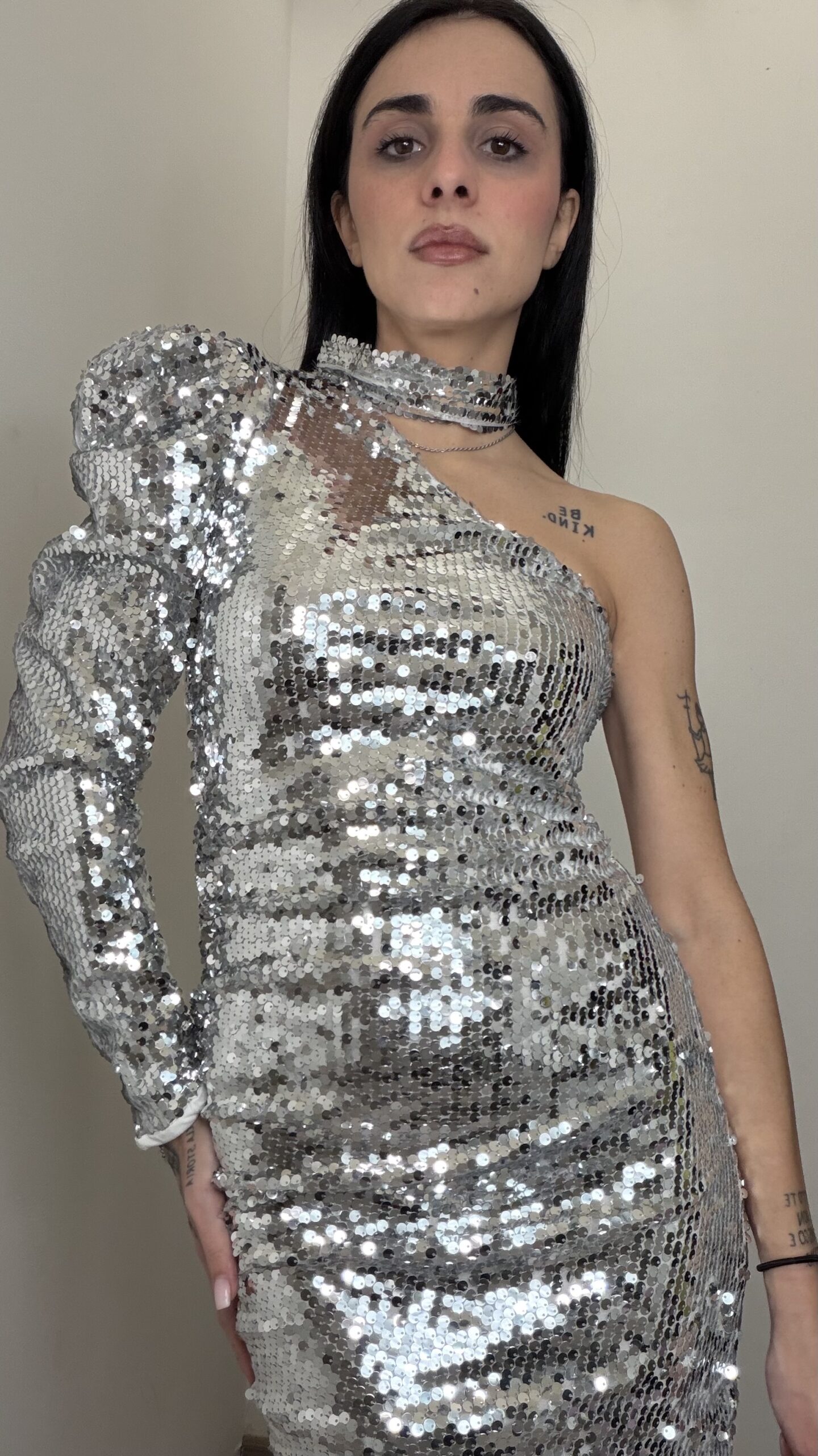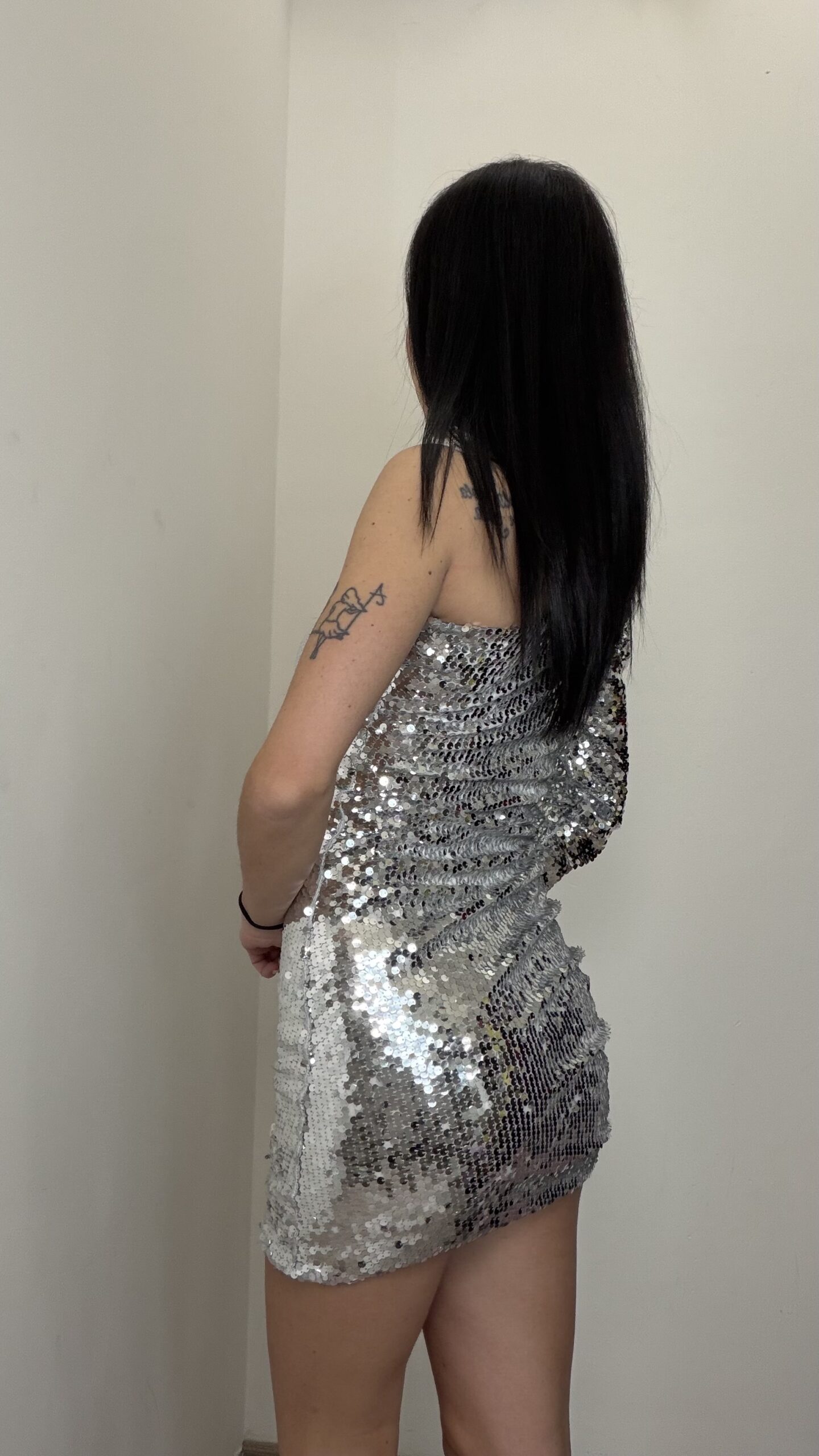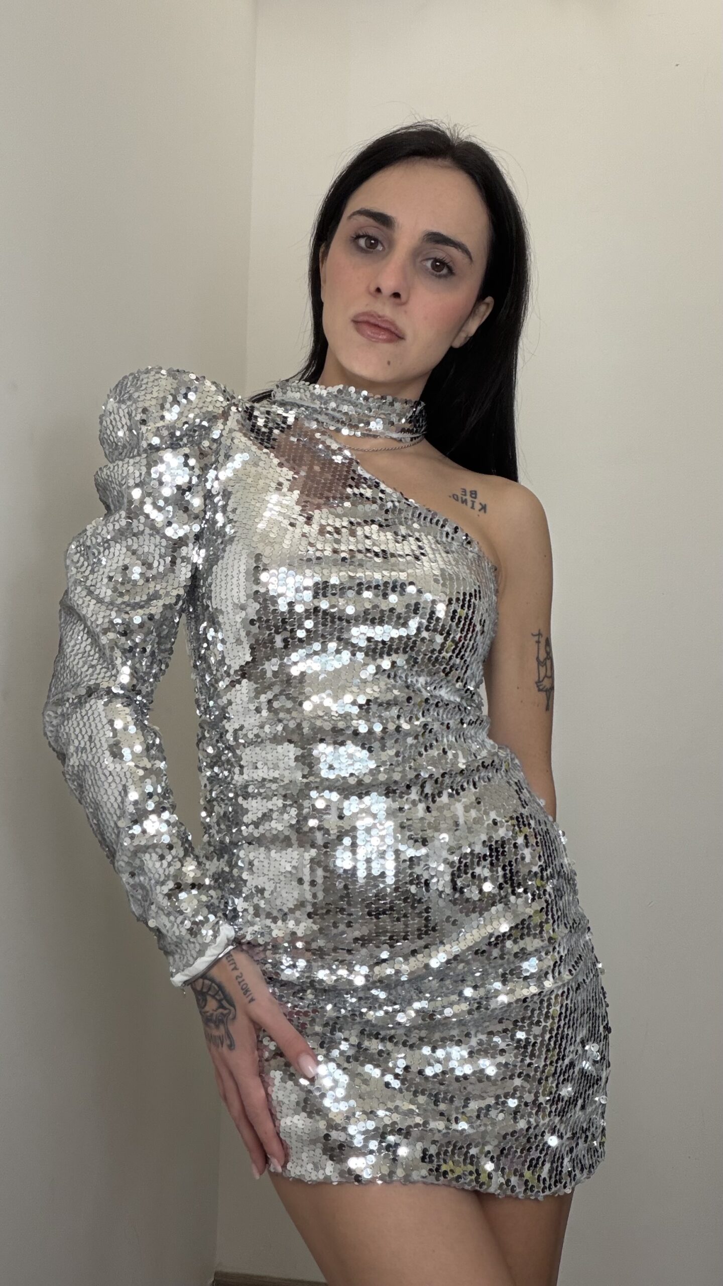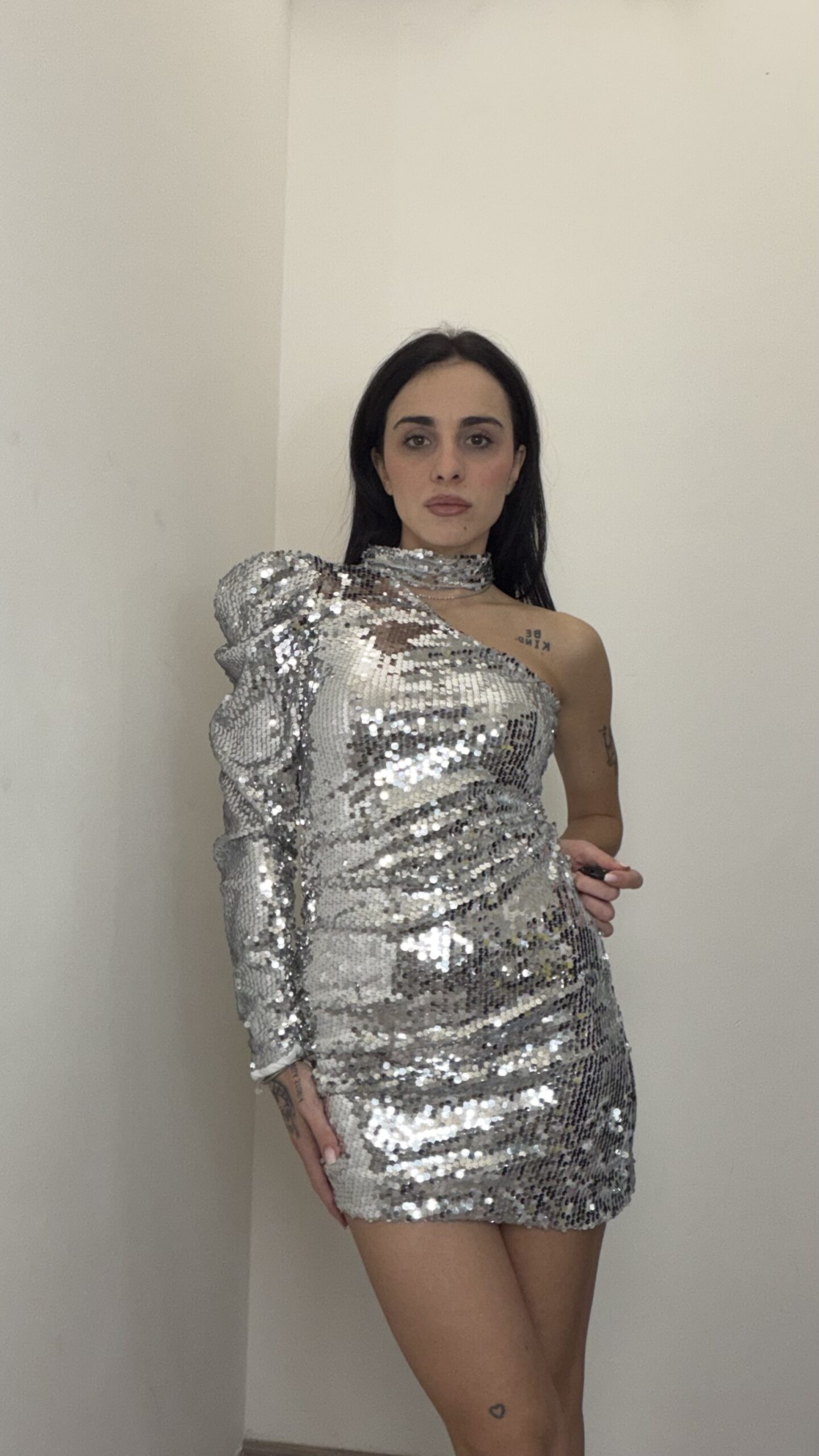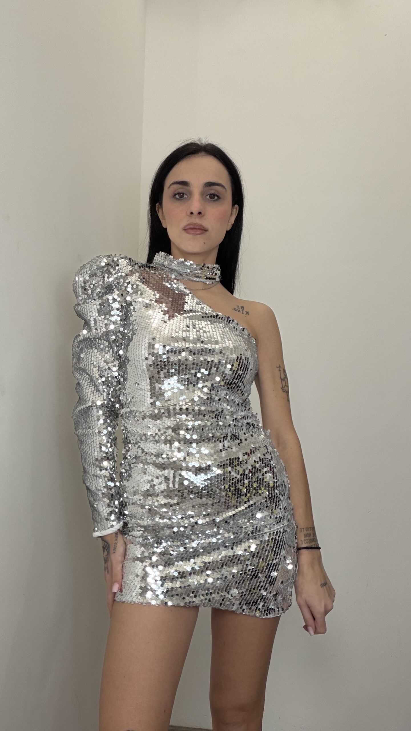 ABITO MONOSPALLA PAILLETTES ARGENTO