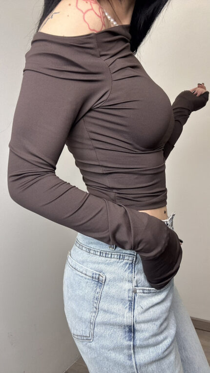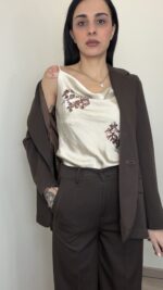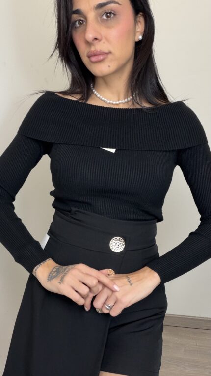 - Scollo leggermente a scialle sia davanti che dietro