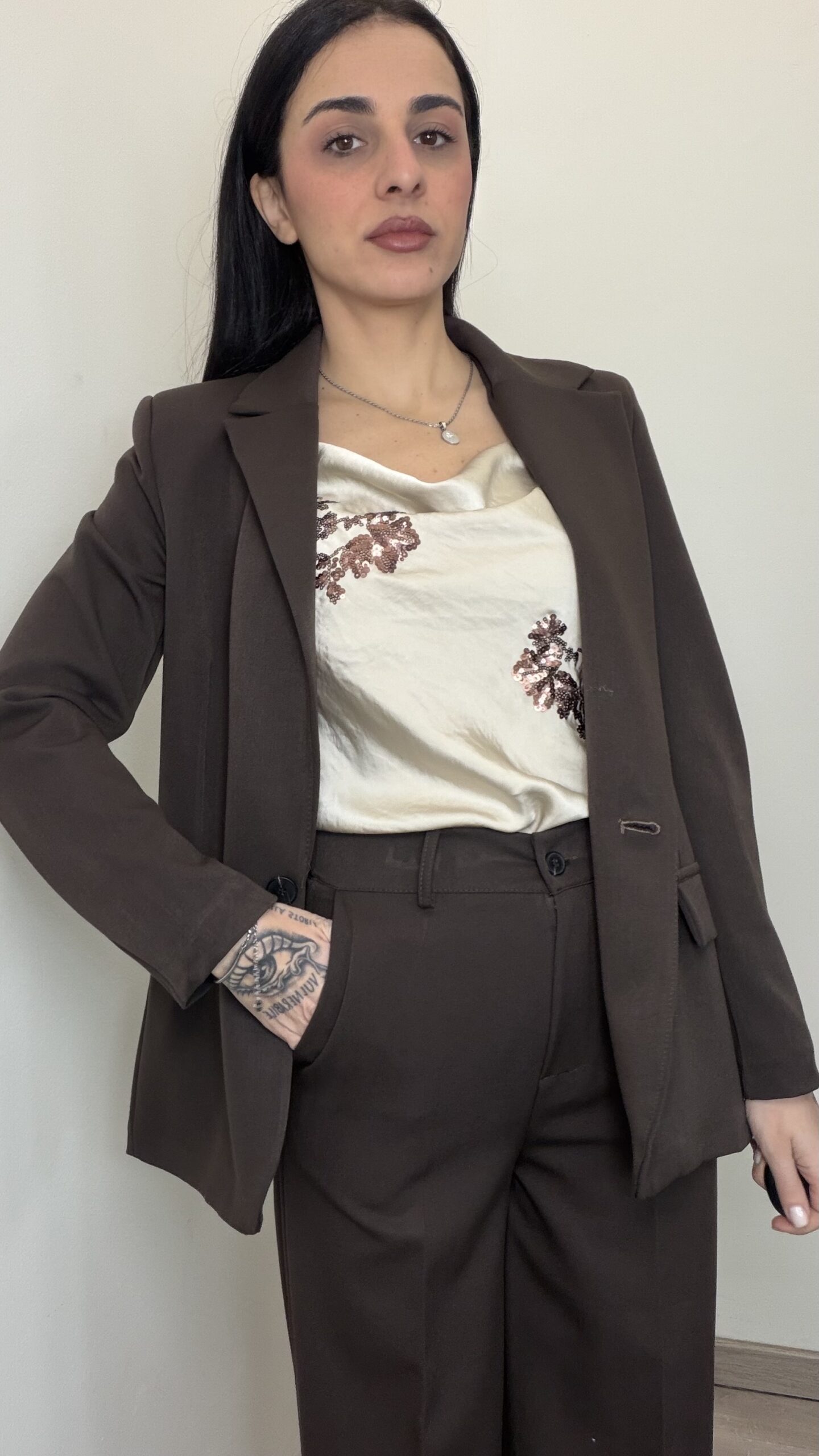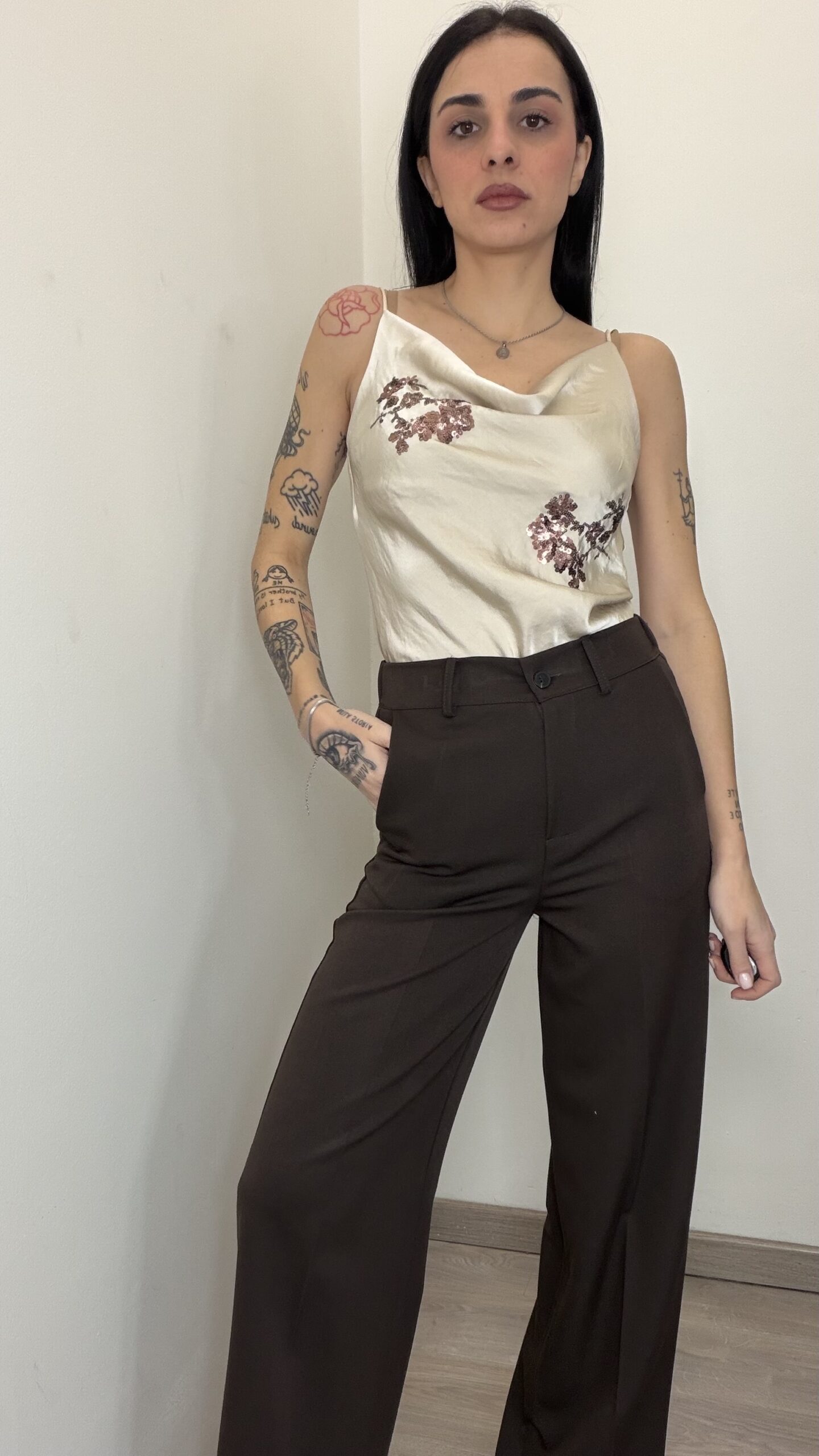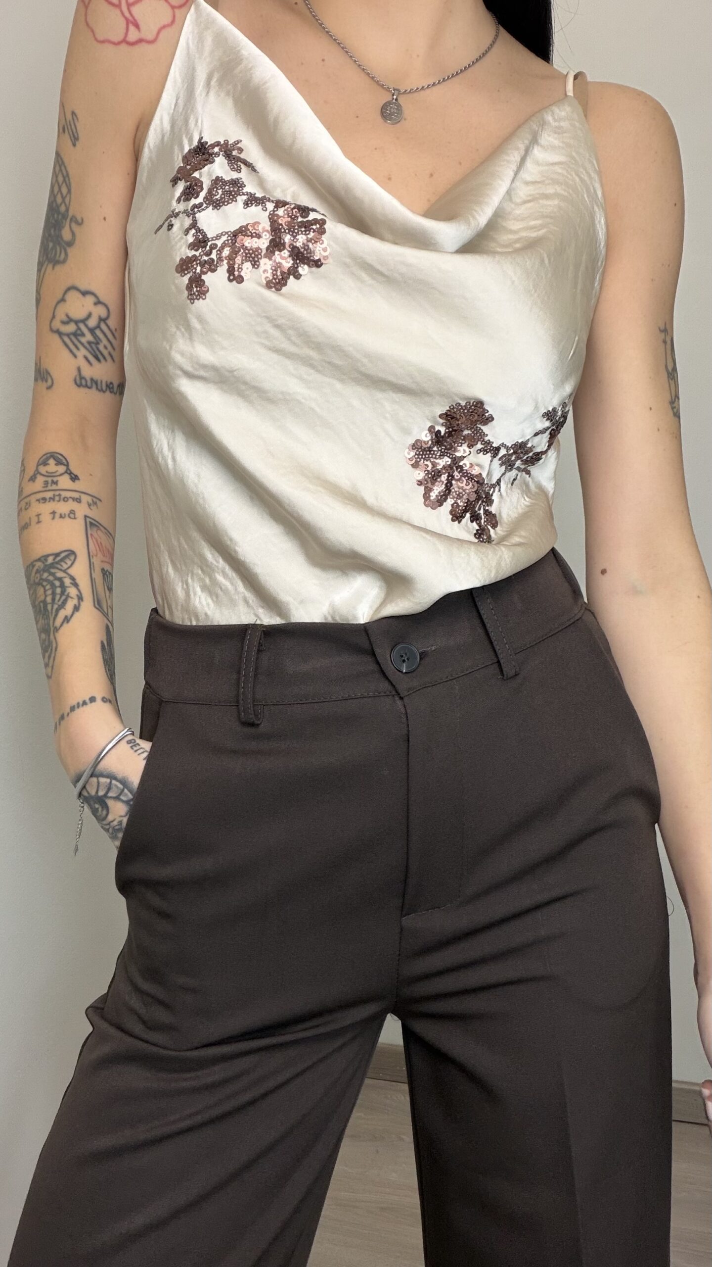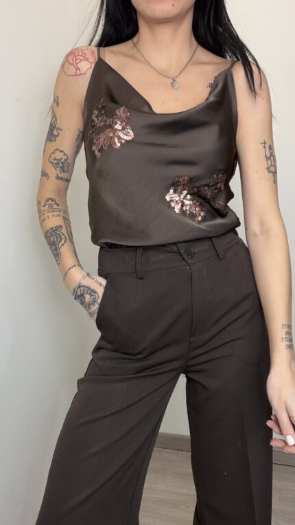 - Disegno floreale con paillettes bronzo