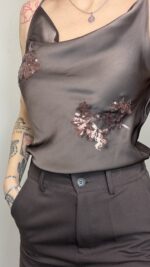 - Disegno floreale con paillettes bronzo