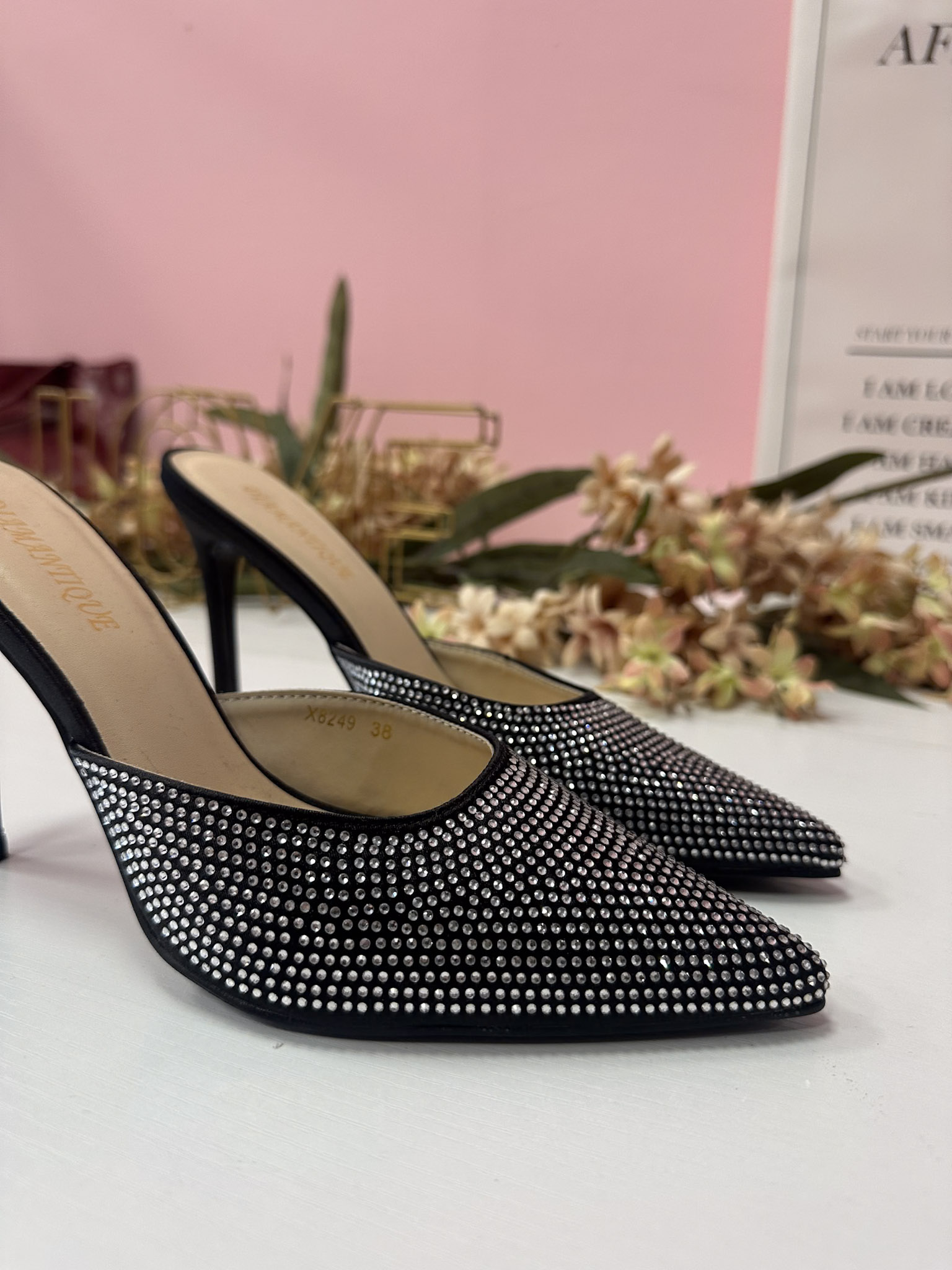 Decolletè in raso con strass